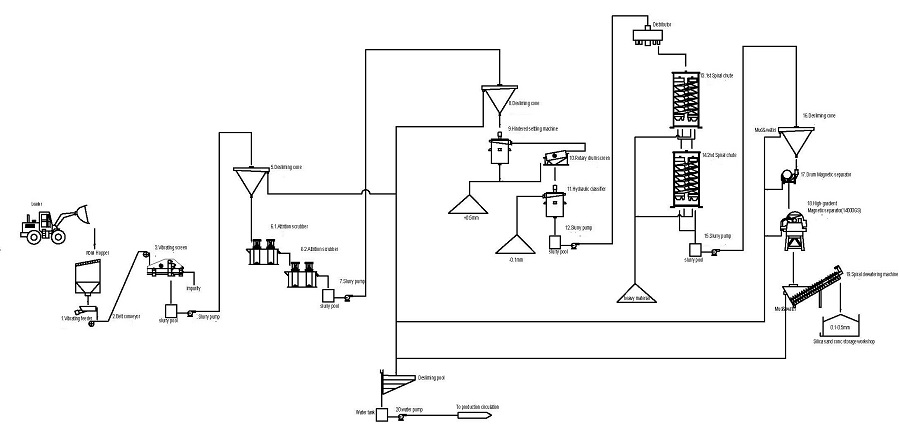 Raw sand go into silica sand washing plant to become high purity sand.