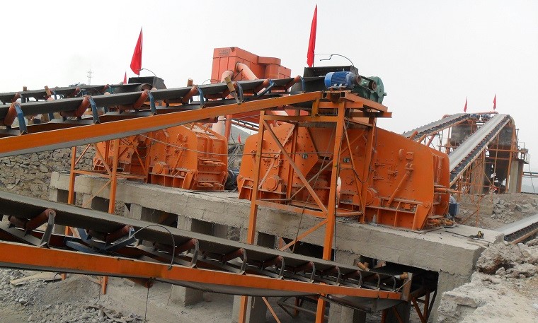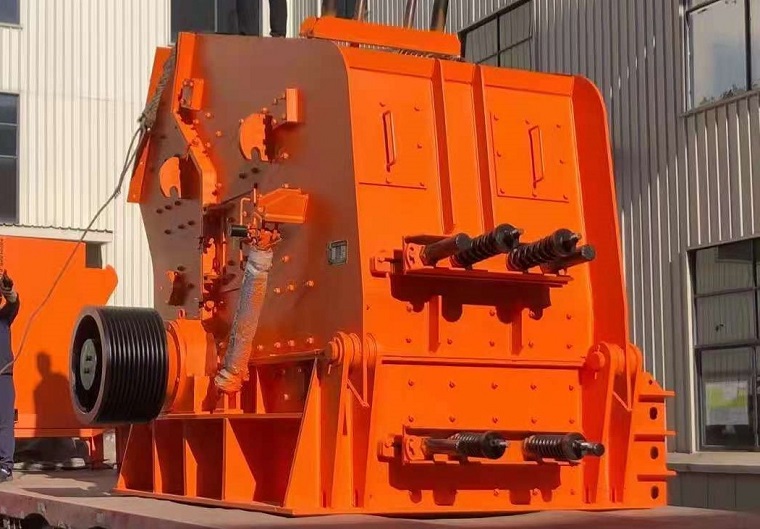 This impact crusher consists of main frame, rotor, front blow bar and back blow bar. Each gyrating cycle is formed by V-belt driving rotor through electronic and materials are crushed by high speed impact of flat hammer on gyrating rotor. After that, the materials are crushed again by throwing impact liner and then crushed again from impact plate to flat hammer. This process works again and again until materials being qualified size.