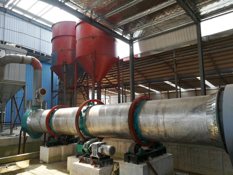 The wet material is transported to the hopper by belt conveyor or bucket elevator, and then enters into the dryer through the feeding pipe. The dryer drum is a slightly inclined rotary drum, the material enters from the higher end, the heat carrier is entered from the lower end, and the material is in contact with the reverse flow, and there is a lifting plate installed on the wall of the drum body, which is to lift the material up and cast it down, making the contact surface between the material and the airflow increase, so as to improve drying rate and push the material forward. After drying, the material falls into the belt conveyor through the discharge port and is transported to the finished material bin.